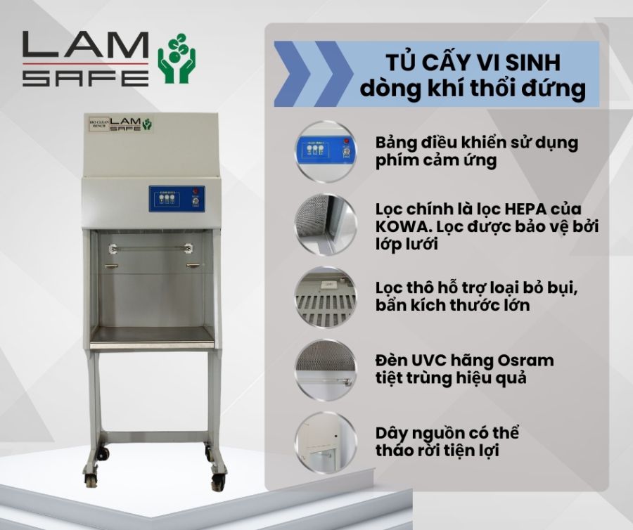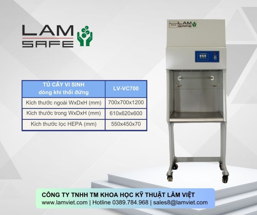 Tủ Cấy Vi Sinh Dòng Khí Thổi Đứng của Lâm Việt là sự lựa chọn lý tưởng cho các phòng thí nghiệm và cơ sở y tế, đảm bảo môi trường làm việc sạch sẽ và an toàn.