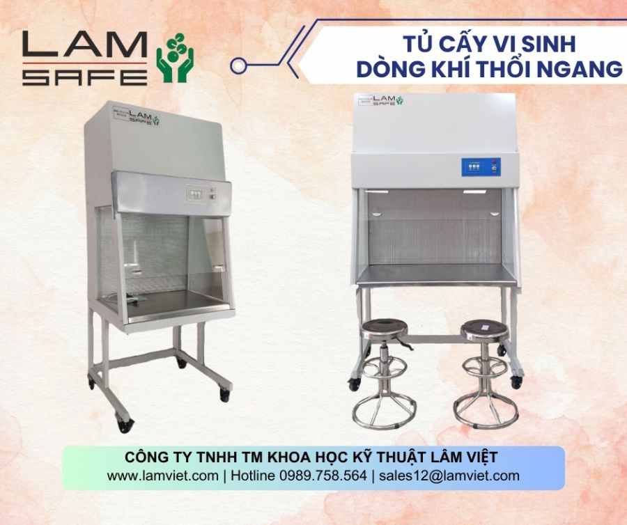 - Tủ thổi ngang tạo môi trường khí sạch trong phạm vi tủ bảo vệ mẫu vật thí nghiệm.