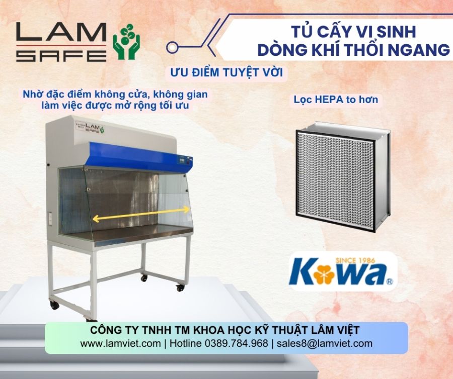 Sản phẩm được sản xuất bởi Lâm Việt, tủ cấy vi sinh dòng khí thổi ngang là sự lựa chọn hoàn hảo cho các phòng thí nghiệm và các ứng dụng cần môi trường sạch khuẩn.