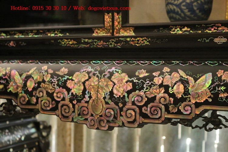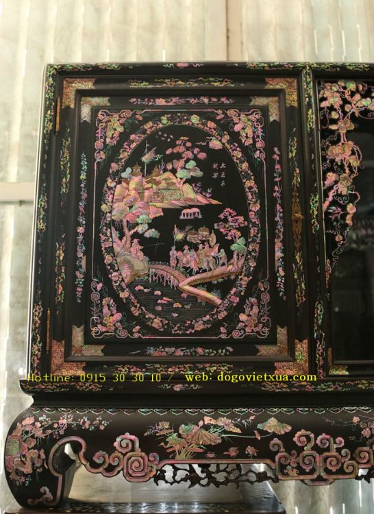 Sập - Gụ - Tủ chè là một thú chơi tao nhã của người Việt. Đặc biệt đối với những gia đình Bắc Bộ, tủ chè là một món đồ chơi không thể thiếu. Tùy theo sở thích của gia chủ, tủ chè cũng có nhiều loại khác nhau: Tủ chè chạm nổi, tủ chè khảm trai, tủ chè khảm ốc, tủ chè gỗ gụ, tủ chè gỗ trắc…ốc xà cừ càng đẹp thì giá trị càng cao. Hôm nay Đồ Gỗ Việt Xưa xin được giới thiệu với quý khách hàng gần xa, những người có cùng đam mê và sở thích sưu tầm những món đồ gỗ đẹp, đồ khảm ốc đẹp, tủ chè đẹp. Một chiếc Tủ Chè Cẩn Ốc Đỏ Lửa Vàng Chanh Xanh Hoa Ly là một trong những tuyệt phẩm đặc sắc hiếm có, một trong những món đồ xưa khảm ốc đẹp nhất mà mình sưu tầm được trong suốt nhiều năm gắn bó với nghề này. Được nghệ nhân Huế xưa chế tác hoàn toàn bằng chất liệu: Gỗ gụ ta, khảm tích tam quốc với loại ốc xà cừ đẹp nhất. Sự cầu kỳ, tỉ mỉ công phu và kỹ thuật cẩn ốc thể hiện trên chiếc tủ chè gỗ Gụ này có phần nhỉnh hơn so với tủ chè gỗ trắc mời quý khách thưởng ngoạn chi tiết hình ảnh phía dưới .