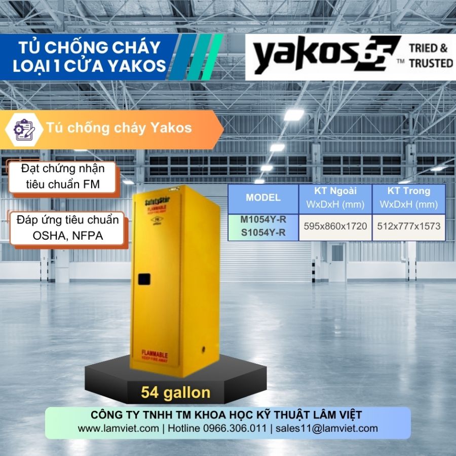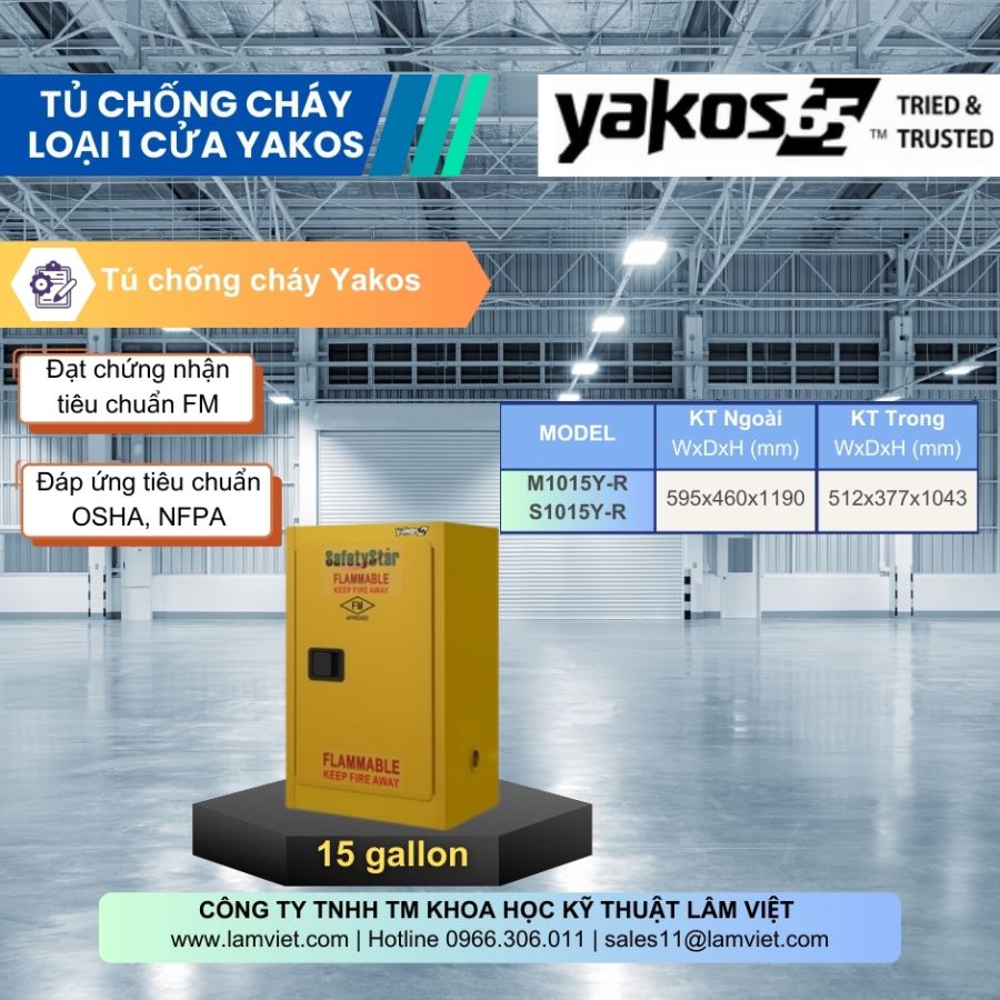 - Sơn màu vàng tiêu chuẩn của tủ chứa dung môi dễ cháy