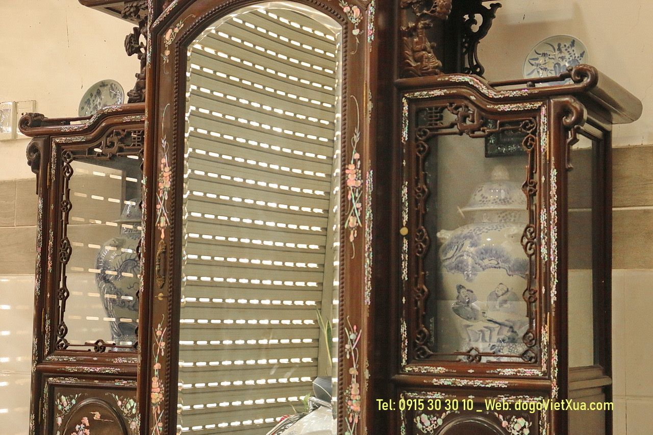 Mời Quý Cô Bác Anh Chị gần xa giao lưu một tác phẩm nghệ thuật độc đáo, kỹ đẹp của dòng đồ Huế Xưa. Chiếc Tủ Trưng Bày Đồ Gỗ Gụ Mật Ta 100% - Khảm ốc xà cừ đỏ lửa - vàng chanh & xanh thiên lý với Kích thước : Cao 2m50 - Rộng 1m55 - Sâu 55cm. Đã qua sử dụng nhiều năm, gỗ đã khô kiệt không lo co ngót hay ảnh hưởng tới ốc. Chất ốc xà cừ Đỏ Lửa - Vàng Chanh - Xanh Thiên Lý, và ốc cũng đã ngả màu thời gian rất đẹp.