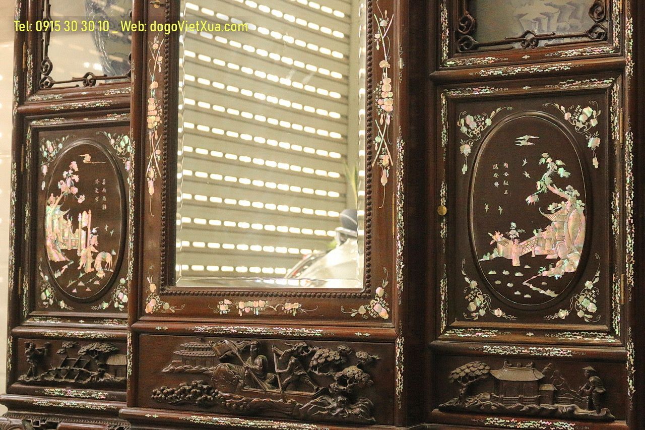 Mời Quý Cô Bác Anh Chị gần xa giao lưu một tác phẩm nghệ thuật độc đáo, kỹ đẹp của dòng đồ Huế Xưa. Chiếc Tủ Trưng Bày Đồ Gỗ Gụ Mật Ta 100% - Khảm ốc xà cừ đỏ lửa - vàng chanh & xanh thiên lý với Kích thước : Cao 2m50 - Rộng 1m55 - Sâu 55cm. Đã qua sử dụng nhiều năm, gỗ đã khô kiệt không lo co ngót hay ảnh hưởng tới ốc. Chất ốc xà cừ Đỏ Lửa - Vàng Chanh - Xanh Thiên Lý, và ốc cũng đã ngả màu thời gian rất đẹp.
