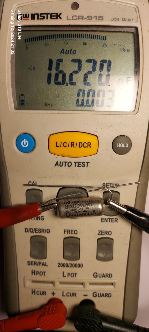 Thông số đo thực tế: 0.015uf ~ 0.016uf