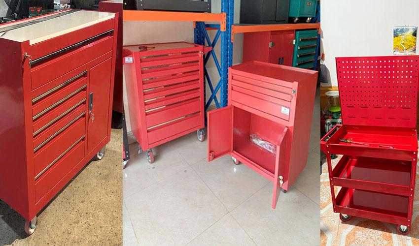 – Xe đẩy dụng cụ, xe đựng đồ nghề 3 ngăn có 1 ngăn kéo khóa