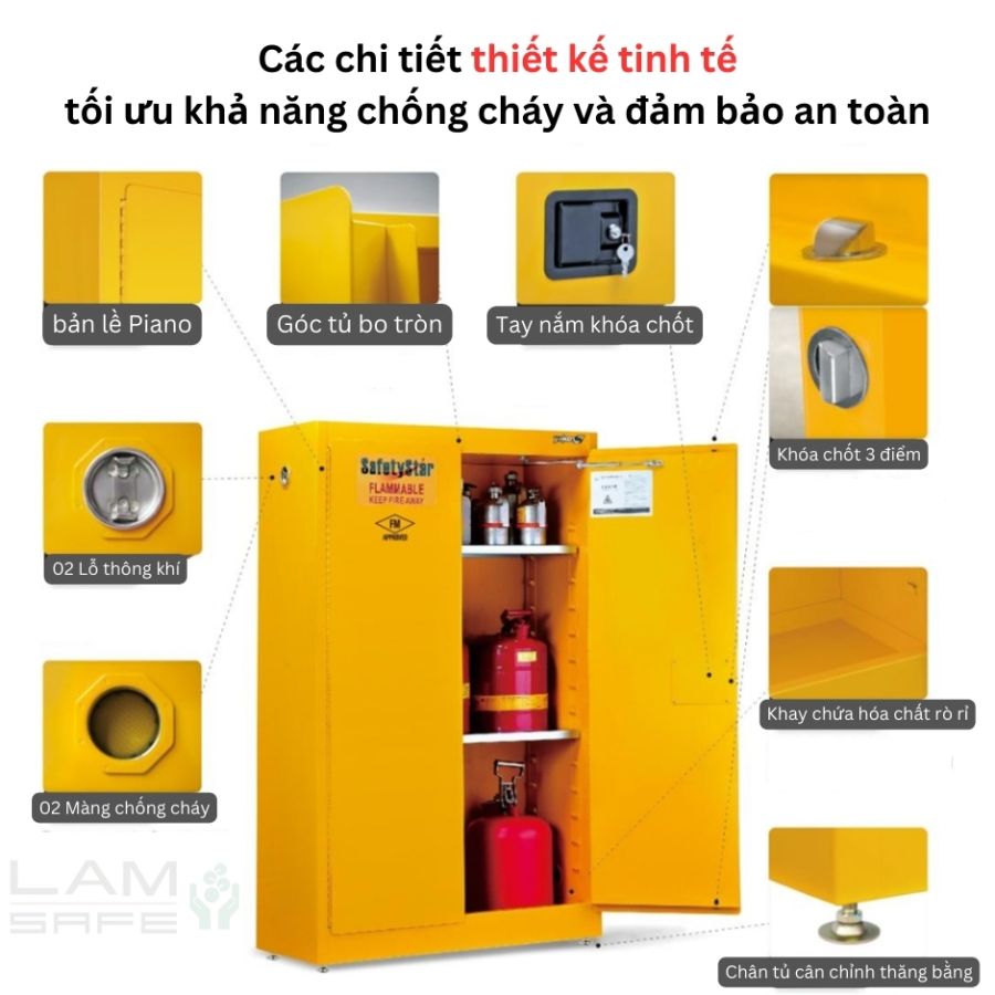 Lý tưởng để lưu trữ các dung môi dễ cháy như Ether, Heptane, Acetone, Ethanol, Gasoline, Methanol…