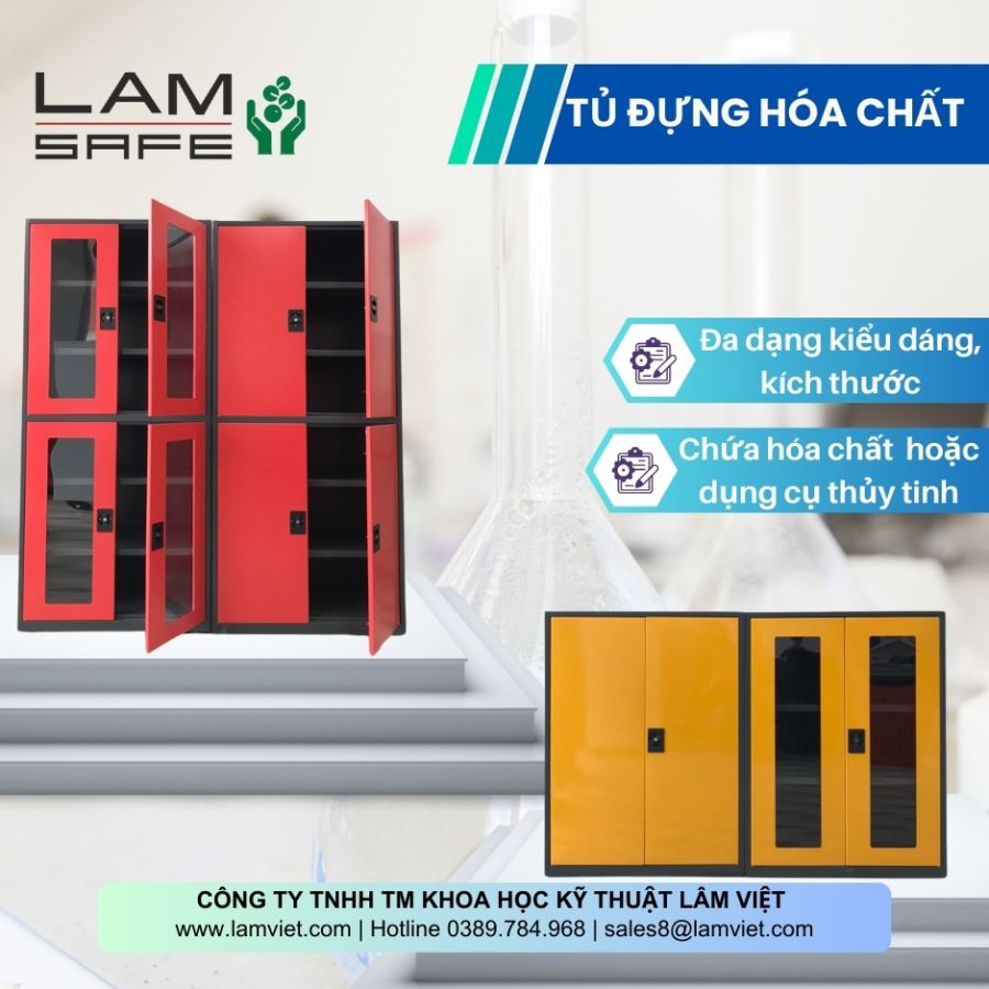 - Tủ đựng hóa chất của Lâm Việt không chỉ đảm bảo tiêu chuẩn an toàn mà còn mang đến sự tiện nghi và hiệu quả trong việc quản lý và sử dụng hóa chất trong phòng thí nghiệm. Đây là sự lựa chọn lí tưởng cho các tổ chức nghiên cứu, trường học và các cơ sở sản xuất đòi hỏi môi trường làm việc an toàn và hiệu quả cao.