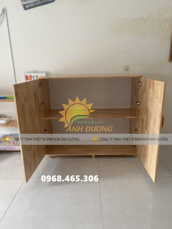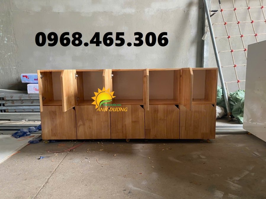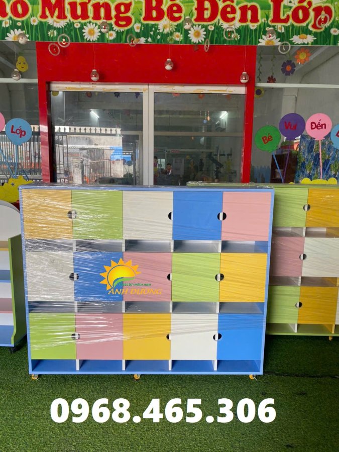 Tủ gỗ đựng cặp balo mầm non, tủ gỗ mầm non mẫu giáo