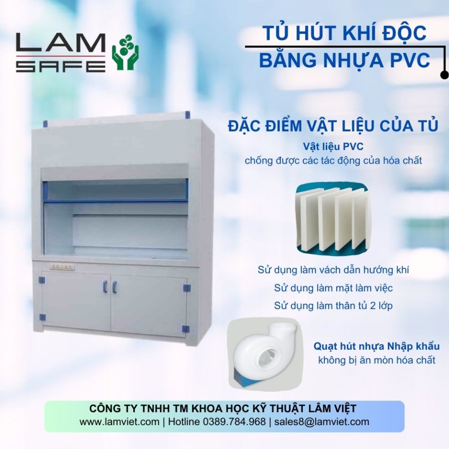Tủ hút PVC là một loại tủ hút được làm từ chất liệu PVC (Polyvinyl chloride), một loại nhựa tổng hợp phổ biến được sử dụng rộng rãi trong nhiều ứng dụng vì tính linh hoạt, bền bỉ và độ bền cao. Tủ hút PVC thường được sử dụng trong các môi trường làm việc tiếp xúc với hóa chất, axit, kiềm, hoặc các chất ăn mòn khác, do PVC có khả năng chống ăn mòn tốt.