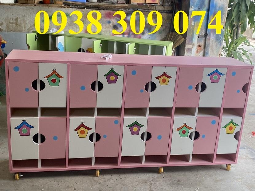 Tủ kệ đựng cặp cho bé mầm non, tủ kệ gỗ cặp dép mầm non