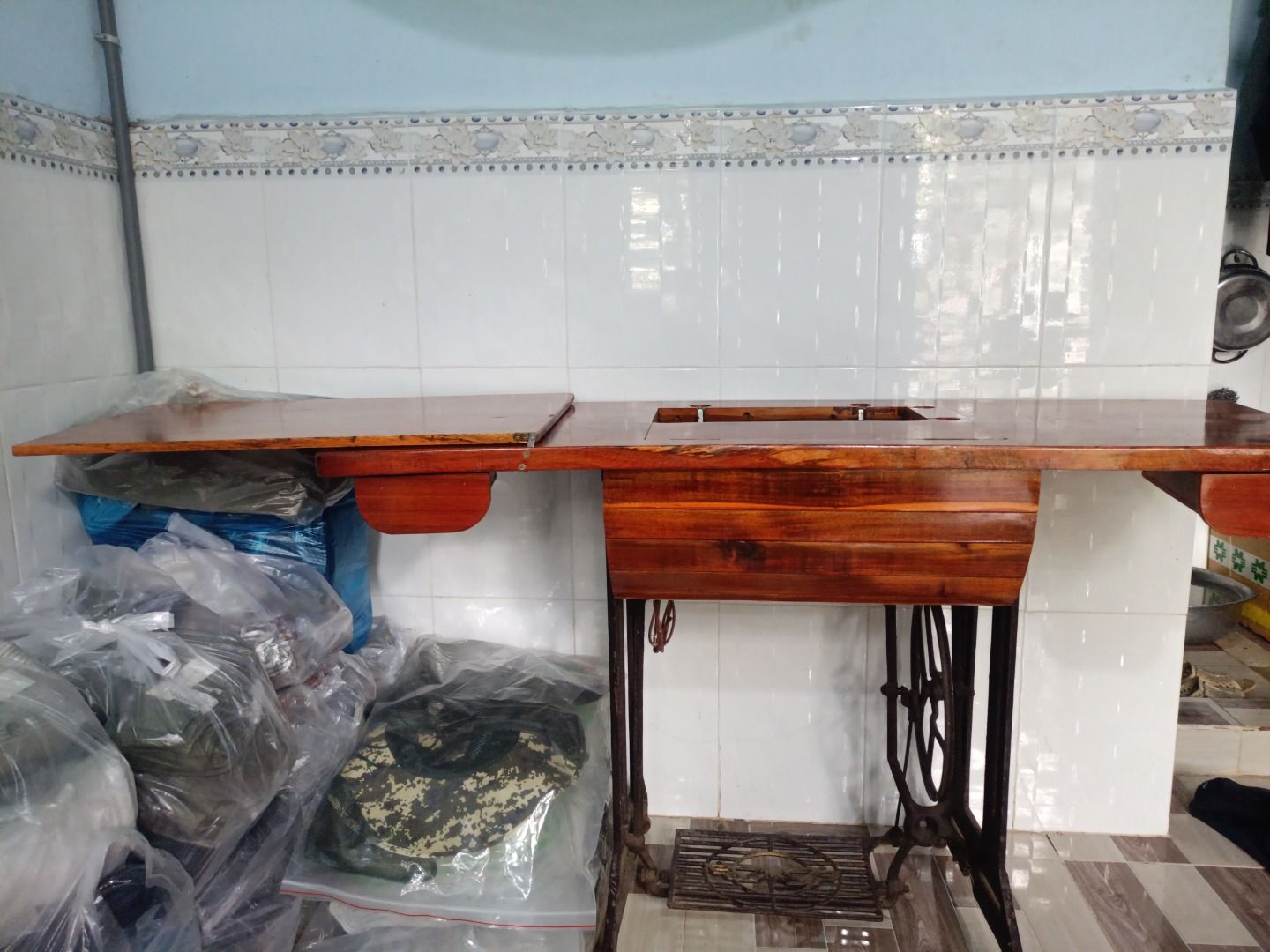 Gồn máy + motor điện cóc đạp + chân sắc + mặt bàn gỗ gõ đỏ nguyên tấm dầy 3cm vâng đẹp , dùng mãi với thời gian 👍