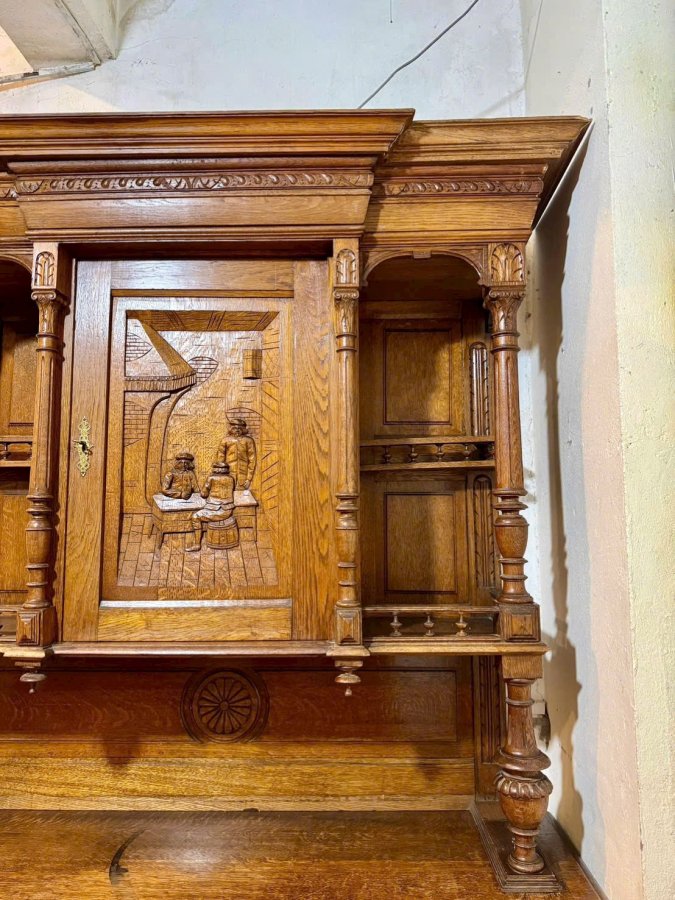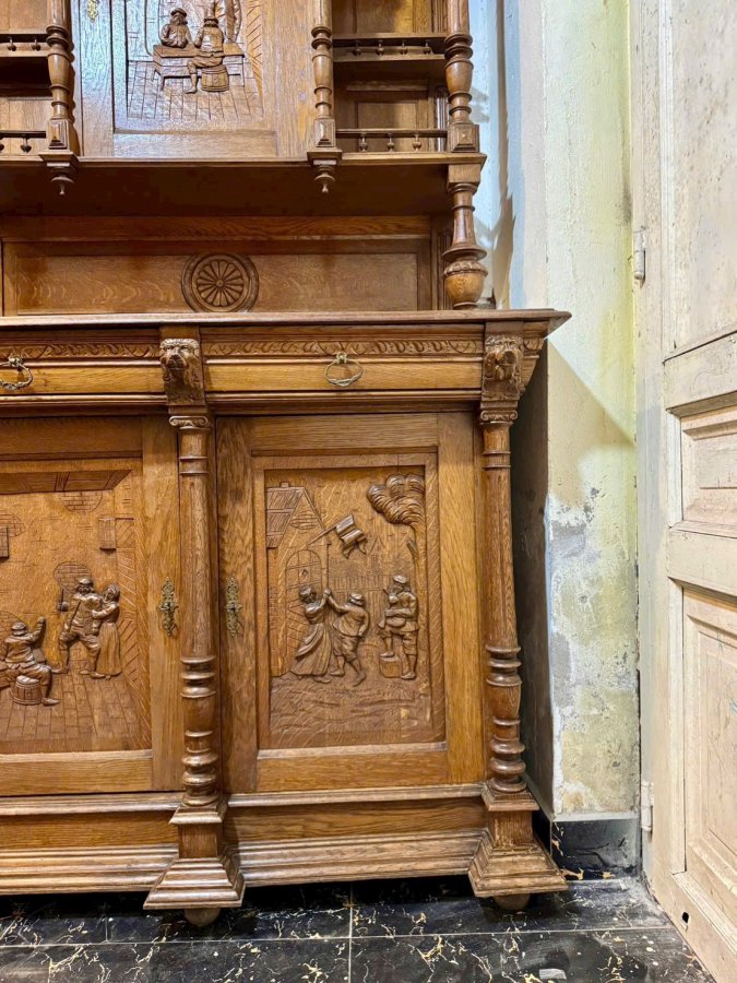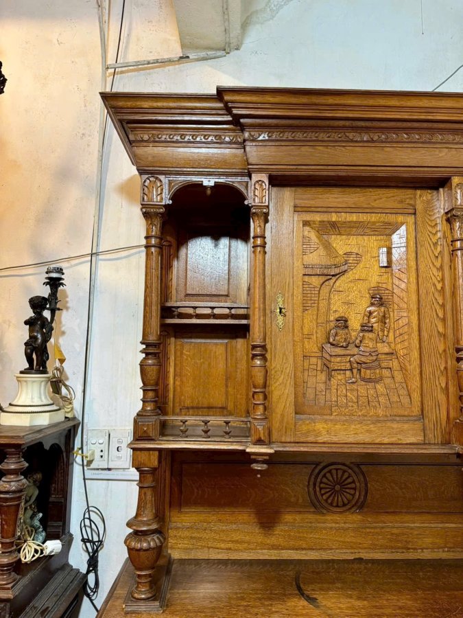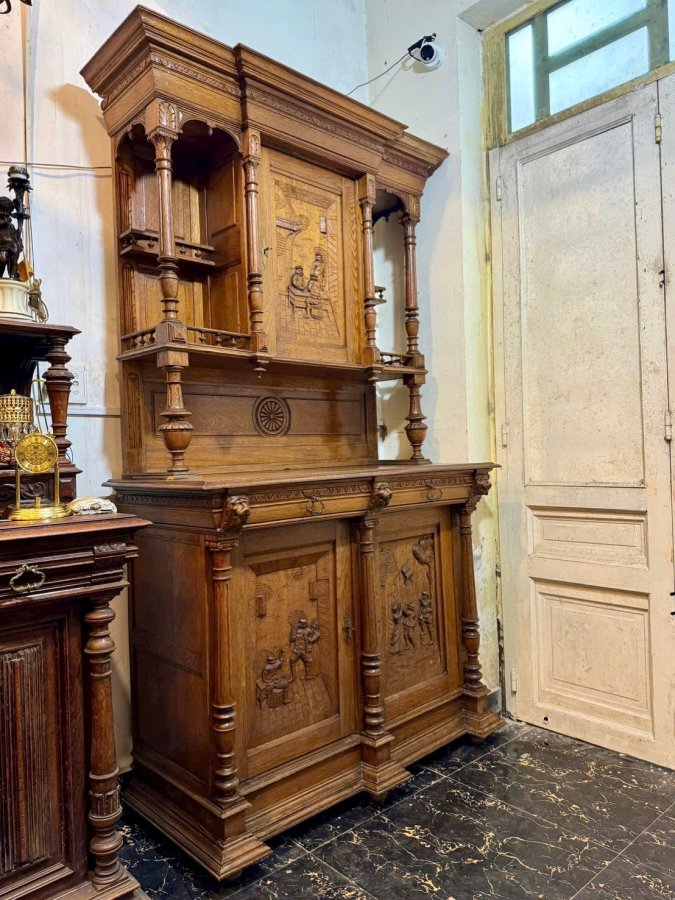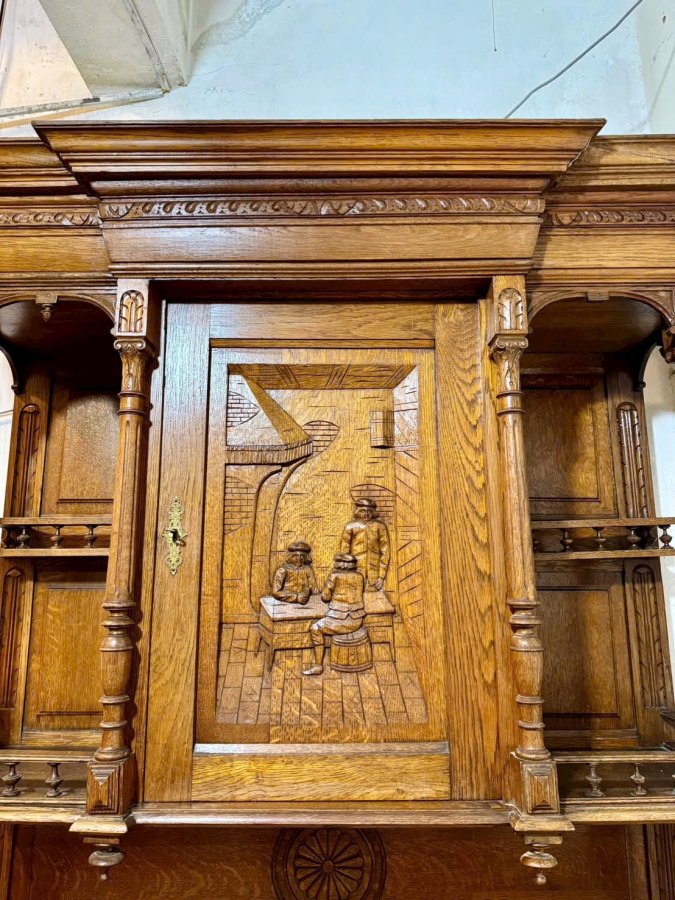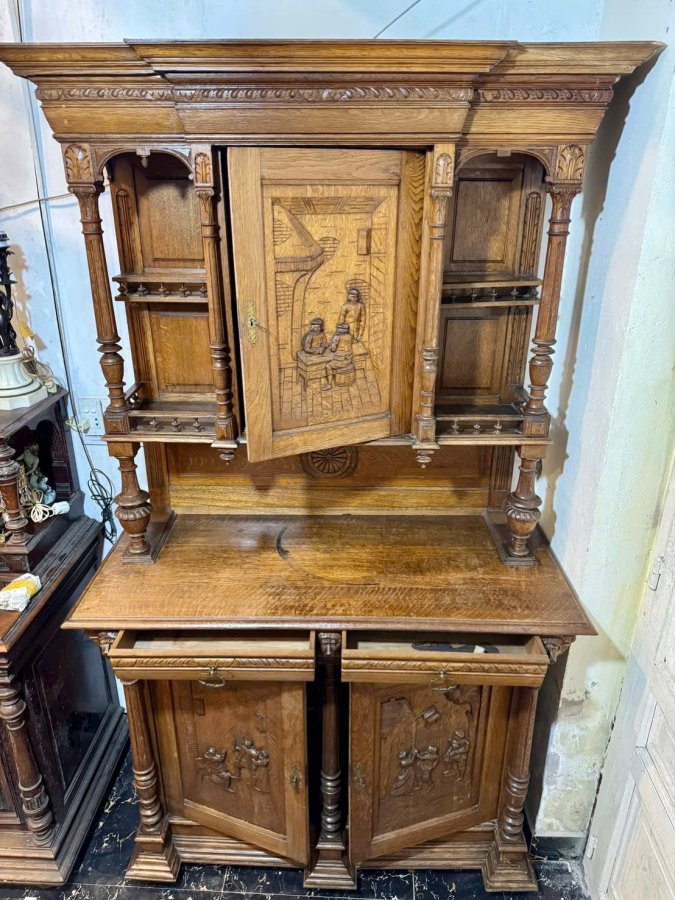 Một chiếc tủ của Pháp trên 100 tuổi làm từ gỗ sồi già hoa văn toàn bộ đục chạm thủ công bằng tay cực kỳ sắc nét và chi tiết tổng thể còn khá đẹp hơi xước xát một tí không đáng kể bán giá mềm cho anh em Call:0333534345