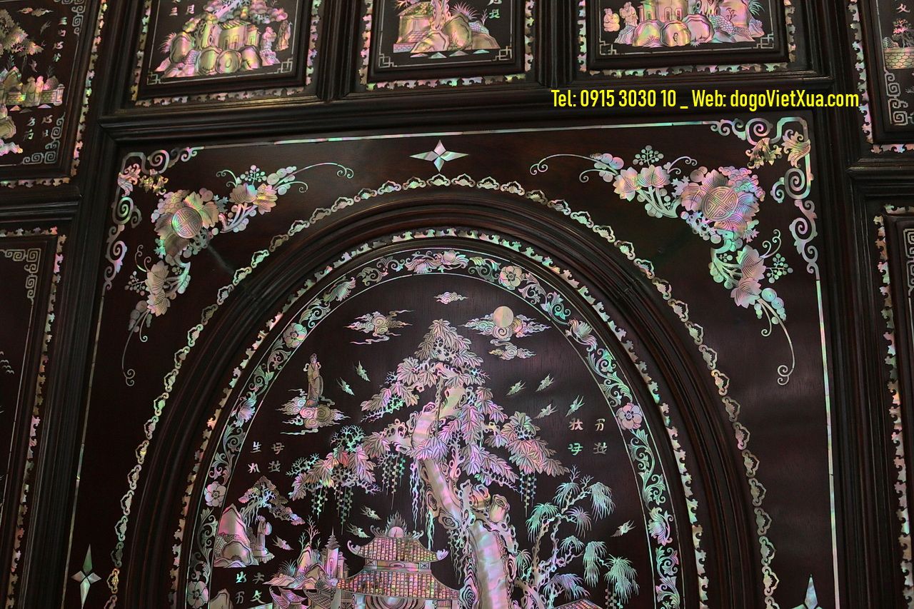 + Nghệ Nhân Gốc Huế Cẩn, Ốc Xà Cừ Bảy Màu Đỏ Lửa – Vàng Chanh – Xanh Hoa Lý Đẹp Đều Trên Tất Cả Các Trám Và Hoa Văn Mặt Diện Tủ. Từ Khâu Nguyên Liệu ( Gỗ, Ốc Xà Cừ ) Đến Khâu Chế Tác Đều Được Lựa Chọn, Rất Tỉ Mỉ, Kỹ Càng… Đường Nét Cắt Hình Người, Cảnh Vật… Rất Sắc Nét Và Sống Động Có Hồn.