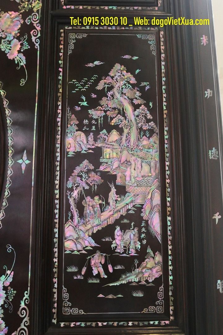 TỦ THỜ CẨN (KHẢM) ỐC XÀ CỪ "NHỊ THẬP TỨ HIẾU" ỐC BẢY MÀU ĐẸP XUẤT SẮC BÁN GIÁ SIÊU TỐT TẠI ĐỒ GỒ GỖ VIỆT XƯA