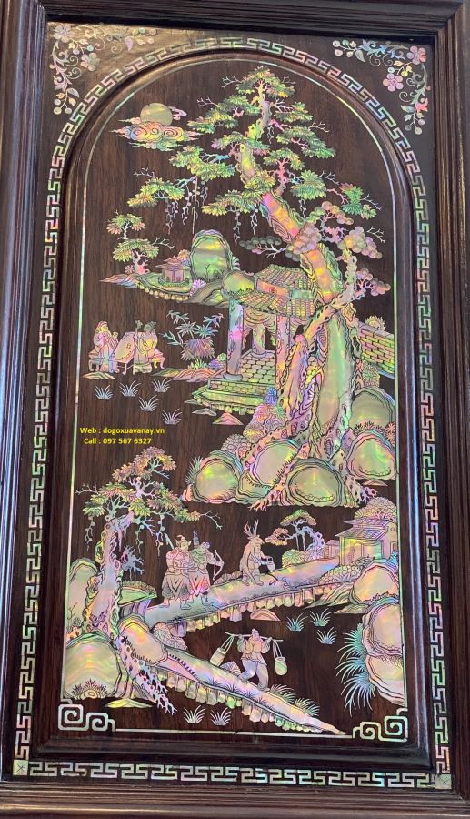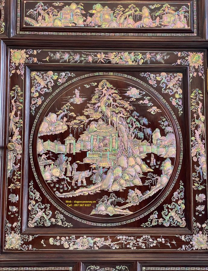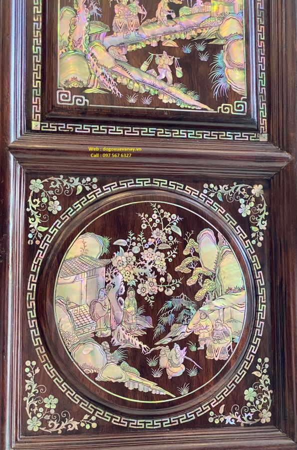 - Phần xung quanh cảnh chính được các nghệ nhân cẩn Chim Hoa - Tứ Quý :