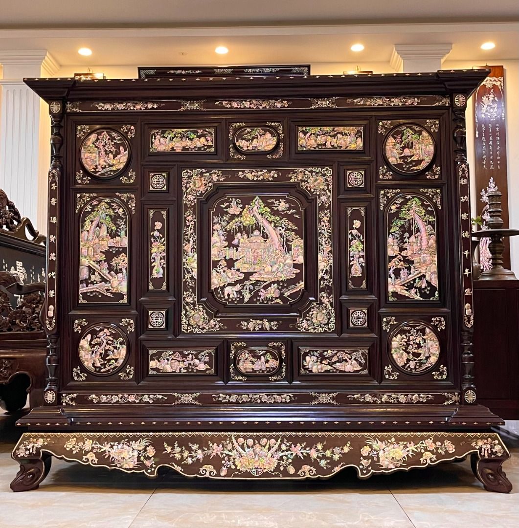 Chất liệu: Gỗ Gụ xưa, xuất xứ Quảng Bình, được các nghệ nhân thời xưa cẩn ốc đỏ lửa, trình độ cẩn sen lọng thuộc hàng đỉnh cao là một sự lựa chọn hoàn hảo cho không gian phòng thờ của bạn.