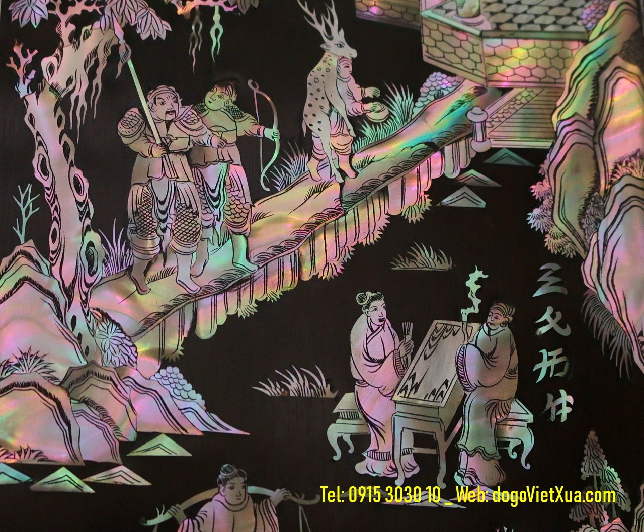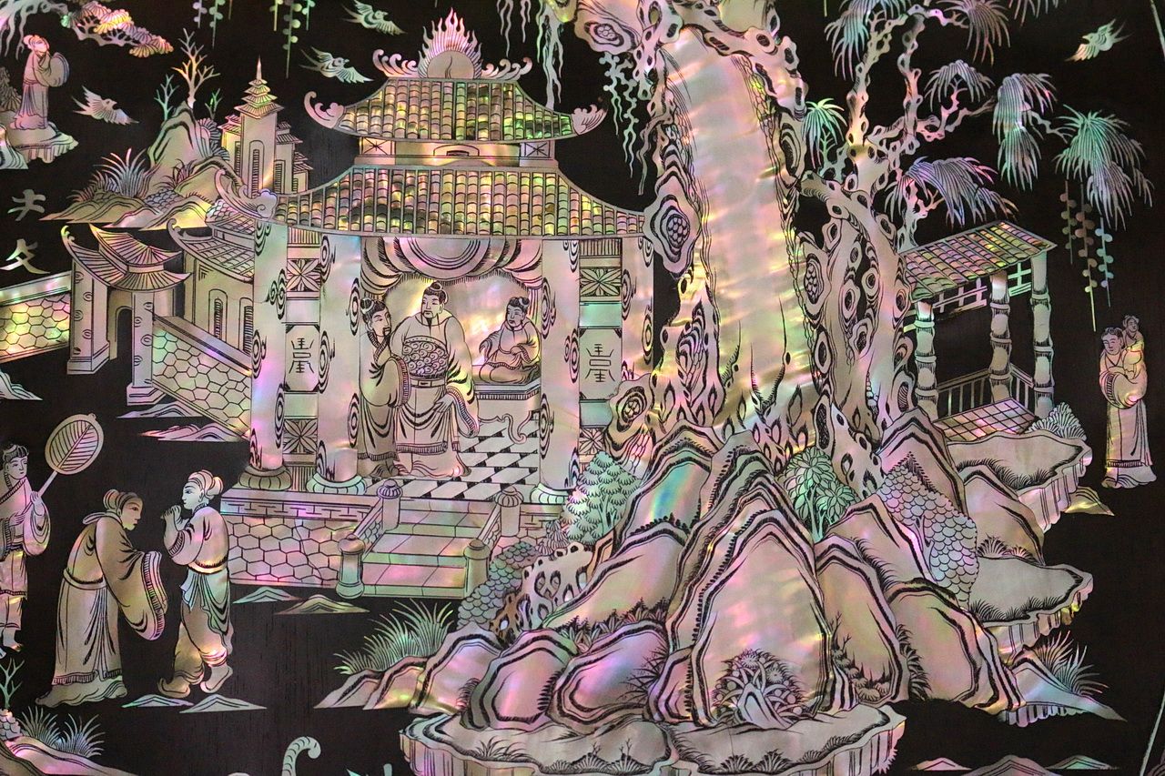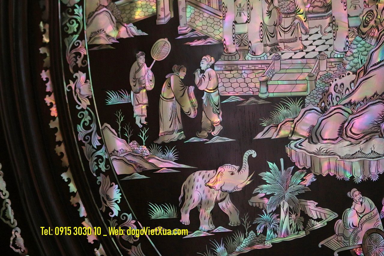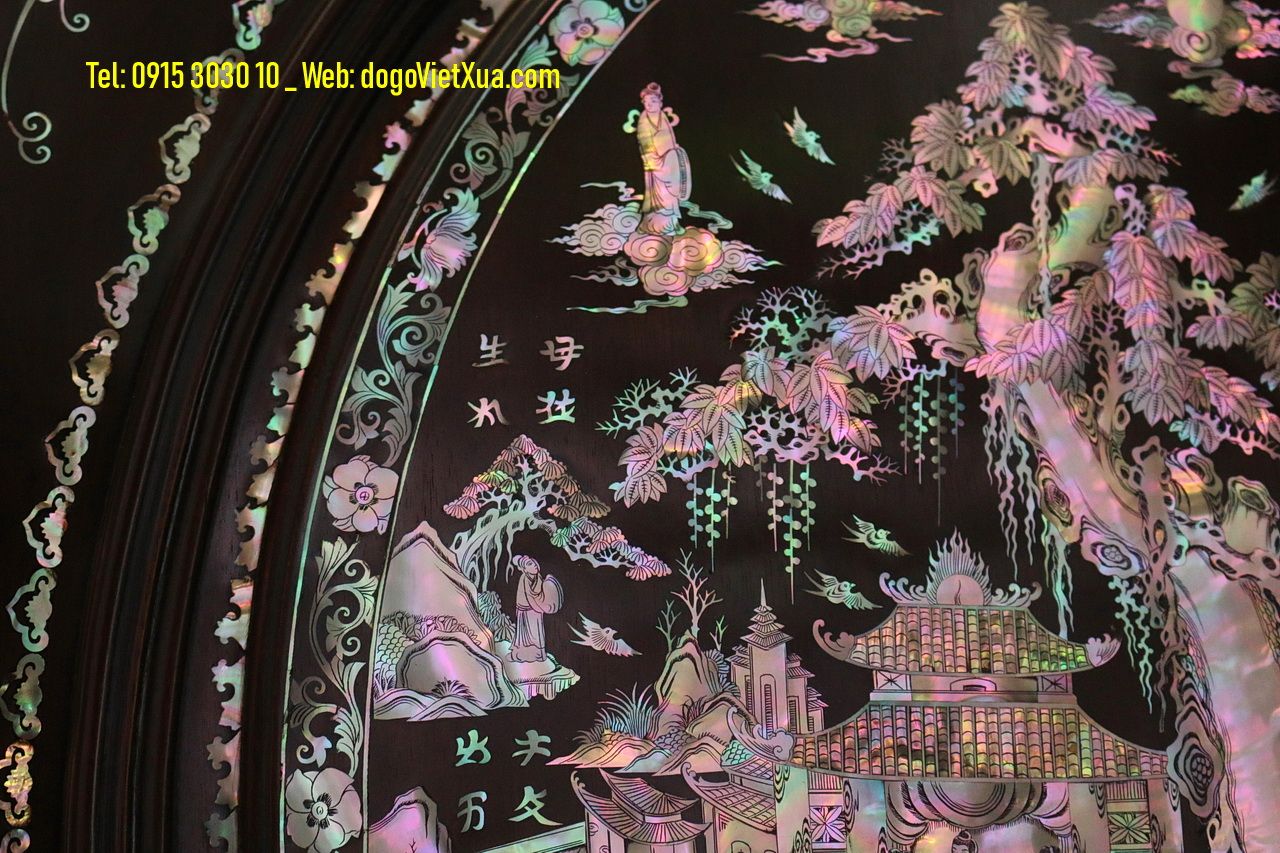 + Nghệ Nhân Gốc Huế Cẩn, Ốc Xà Cừ Bảy Màu Đỏ Lửa – Vàng Chanh – Xanh Hoa Lý Đẹp Đều Trên Tất Cả Các Trám Và Hoa Văn Mặt Diện Tủ. Từ Khâu Nguyên Liệu ( Gỗ, Ốc Xà Cừ ) Đến Khâu Chế Tác Đều Được Lựa Chọn, Rất Tỉ Mỉ, Kỹ Càng… Đường Nét Cắt Hình Người, Cảnh Vật… Rất Sắc Nét Và Sống Động Có Hồn.