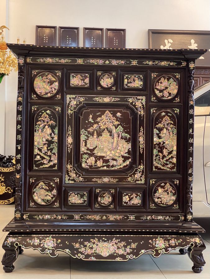Tủ Thờ Gỗ Trắc Cẩn Ốc Nhị Thập Tứ Hiếu