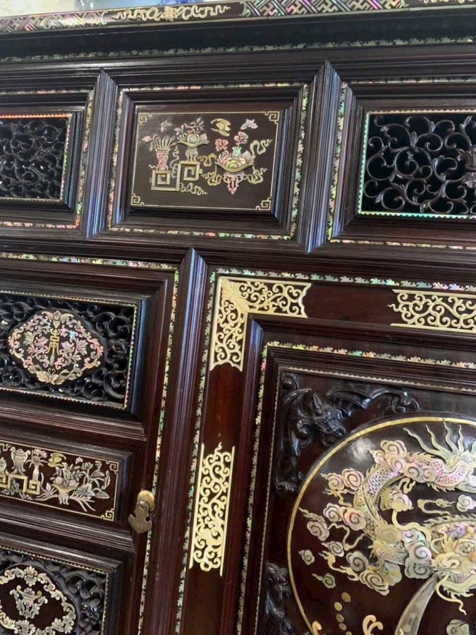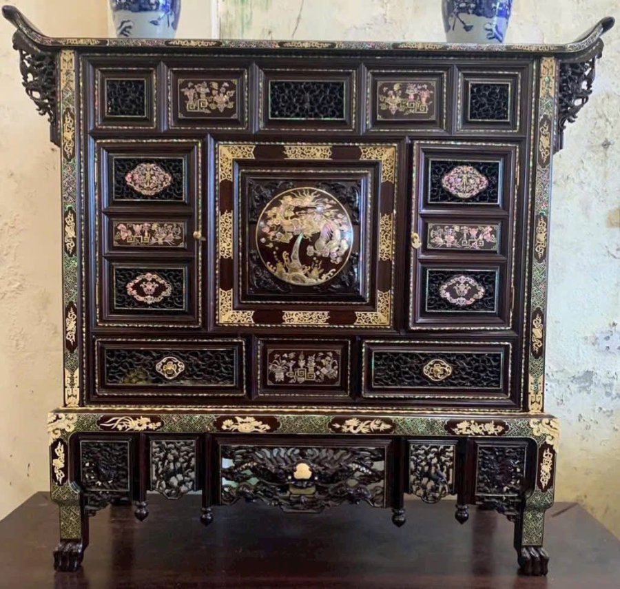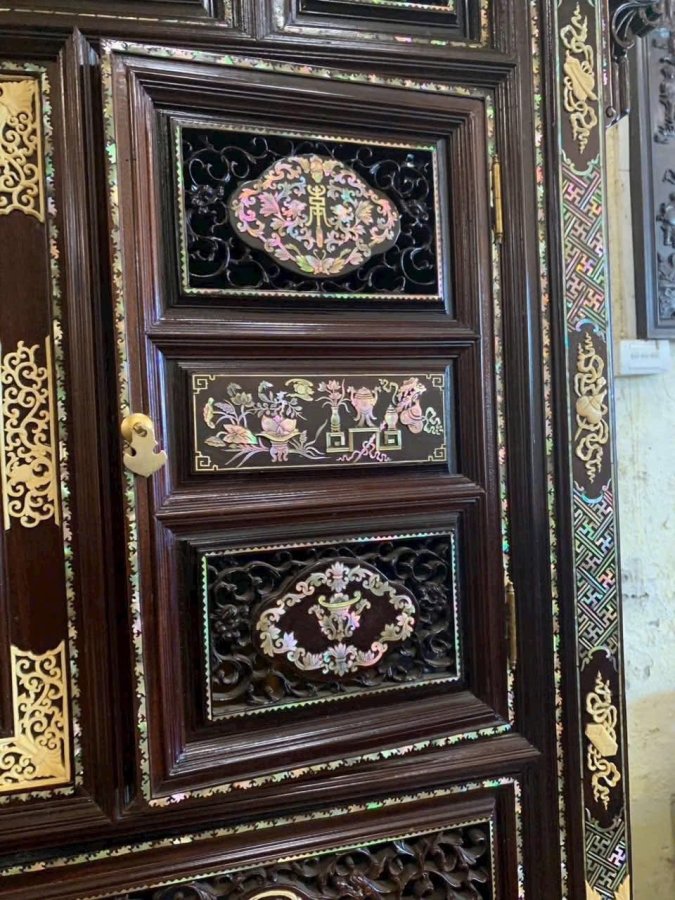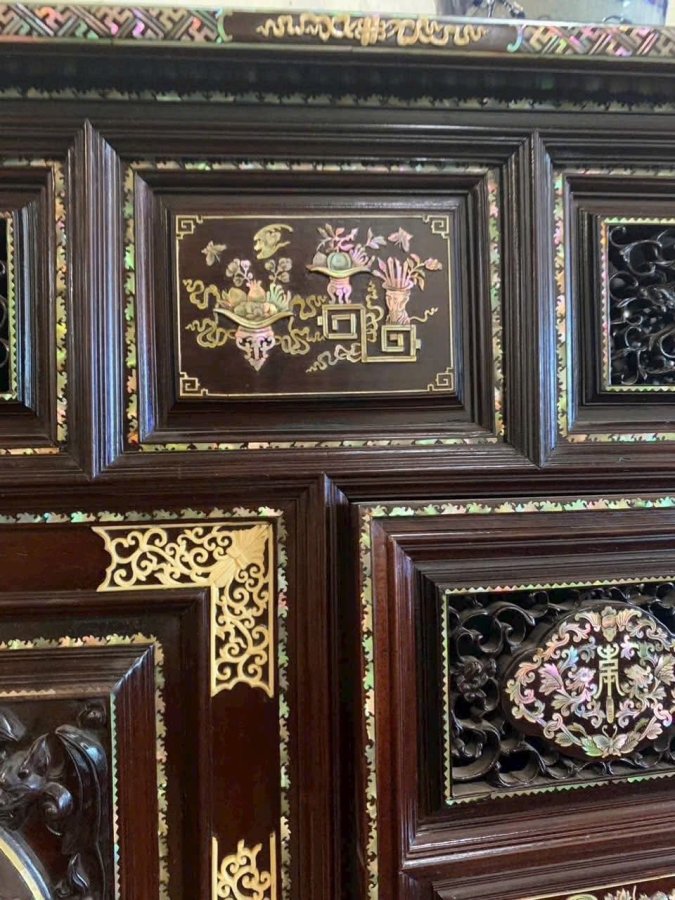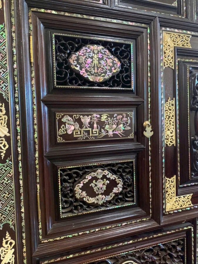 Tủ thờ Huế gỗ gụ khảm ốc và ngà lối huế sắc nét Cao 147x157x64cm