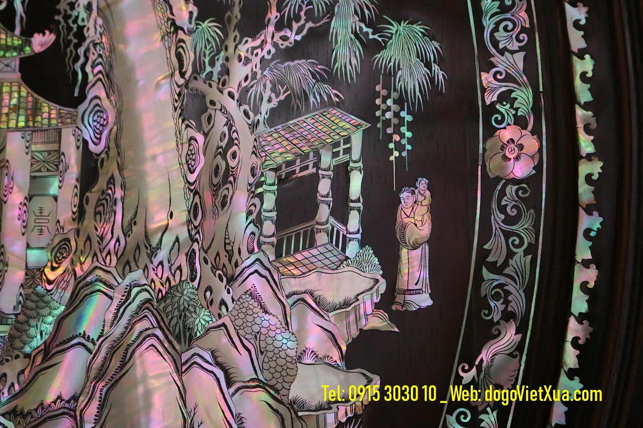 + Nghệ Nhân Gốc Huế Cẩn, Ốc Xà Cừ Bảy Màu Đỏ Lửa – Vàng Chanh – Xanh Hoa Lý Đẹp Đều Trên Tất Cả Các Trám Và Hoa Văn Mặt Diện Tủ. Từ Khâu Nguyên Liệu ( Gỗ, Ốc Xà Cừ ) Đến Khâu Chế Tác Đều Được Lựa Chọn, Rất Tỉ Mỉ, Kỹ Càng… Đường Nét Cắt Hình Người, Cảnh Vật… Rất Sắc Nét Và Sống Động Có Hồn.
