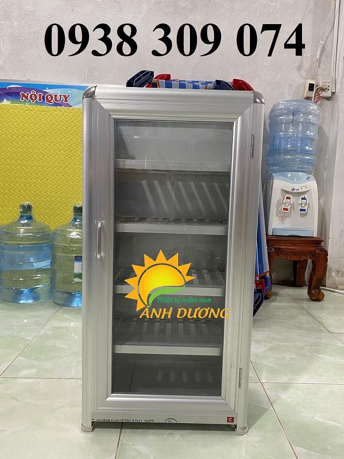 Chất liệu: Khung tủ bằng nhôm cao cấp, tủ đựng ca cốc có 2 cánh, 2 bên hồi bằng meca. Phía