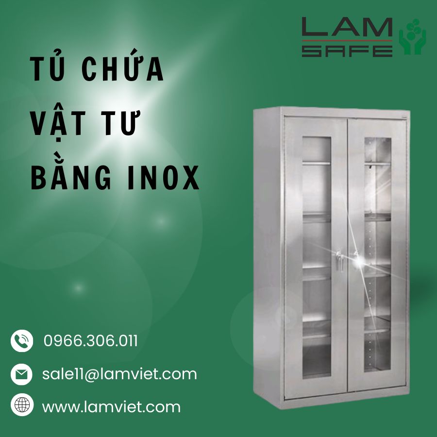 • Tủ y tế thường được làm từ inox 304, có khả năng chống ăn mòn và oxy hóa, dễ dàng vệ sinh và không phản ứng với các hóa chất y tế.