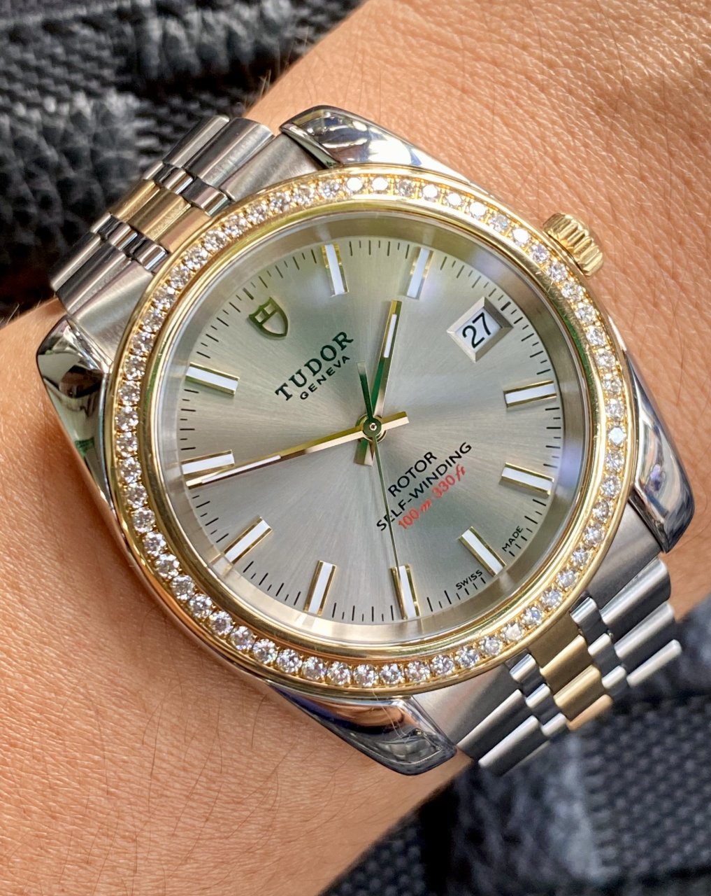 ⛔️Tudor Classic Automatic Grey Dial Bezel Diamond demi 18k Gold chính hãng tudor🇨🇭sản xuất. Niềng bezel Kim Cương Zin hãng VS-SI F-G cực chiếu, niềng và mắt dây demi Vàng Đúc 18k 750. Chĩ còn đh only watch.