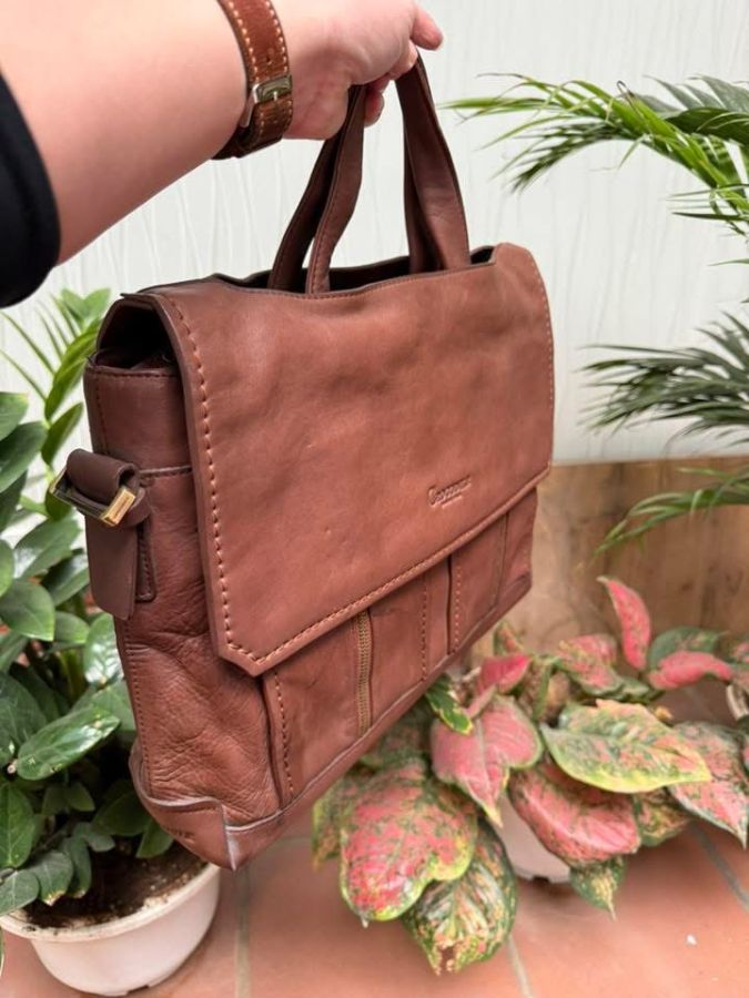 - Thiết kế dáng vintage với hai ngăn phụ mặt trước khá độc lạ, khoá miệng kết hợp nắp gập, size 37x28x8 phù hợp dòng laptop, sổ sách, tài liệu….
