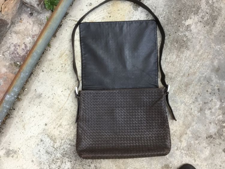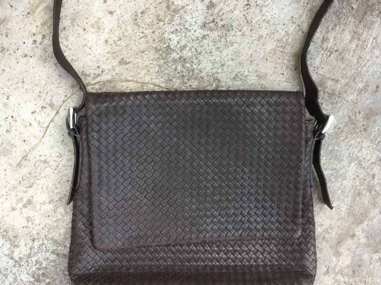 Túi đeo chéo hàng hiệu bottega veneta made in italy bằng da thật cực chất gl ae . Túi được làm baengf da bê đan xen vào nhau , da rất mềm và cực chất , để ipad giấy tờ vô tư . Nắp túi bằng da luôn nói chung là vô cùng chất lượng