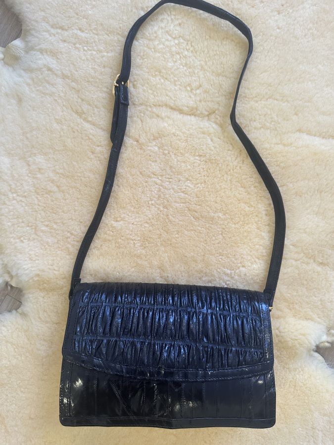Túi đeow chéo làm bằng da lươn biển vô cùng độc đáo . Chất da bền bỉ và có độ bóng cao . Quan trọng là lhas hiếm gặp . Các chi tiét lim loại vàng choé