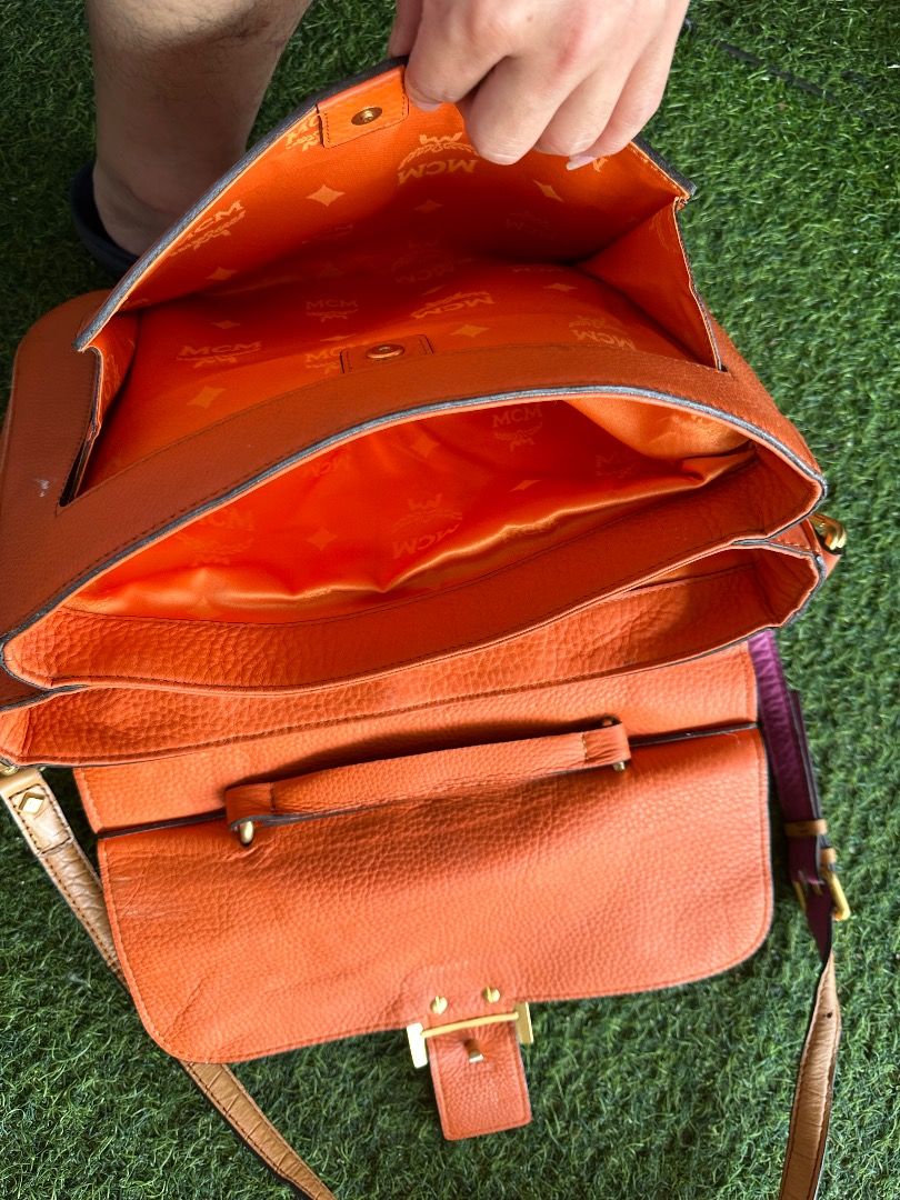 Em đeo chéo hoặc ********* cực đẹp bằng da thật hàng hiệu mcm khuy khóa dập hiệu từ le túi rất đẹp chị e dsi chơi dsi tiệc ok hết