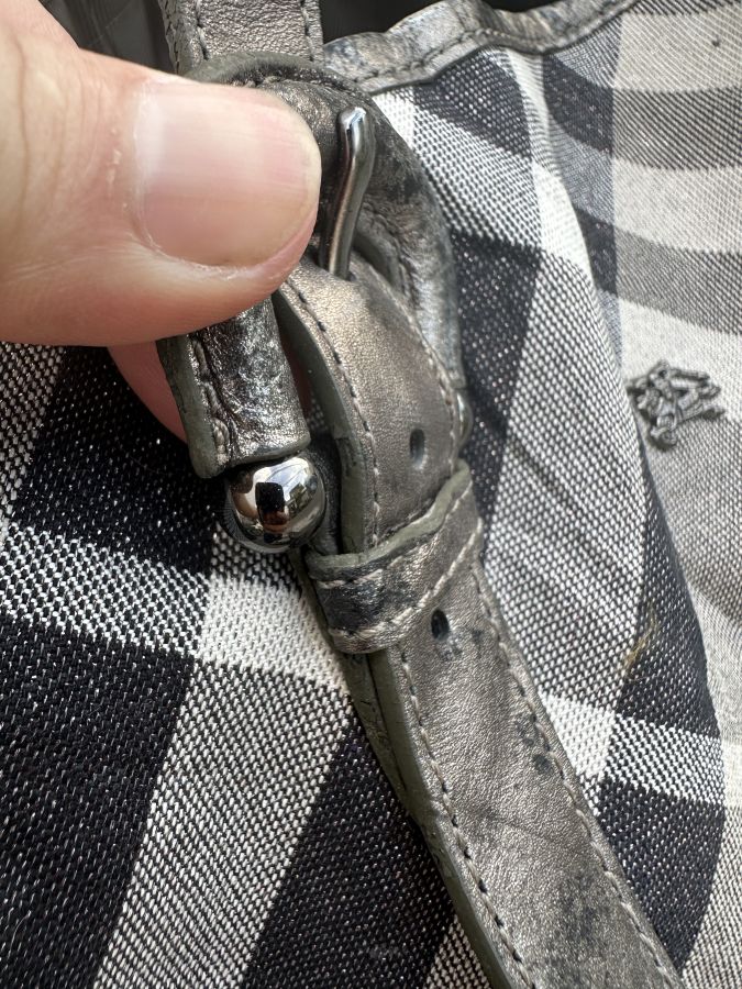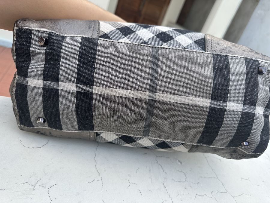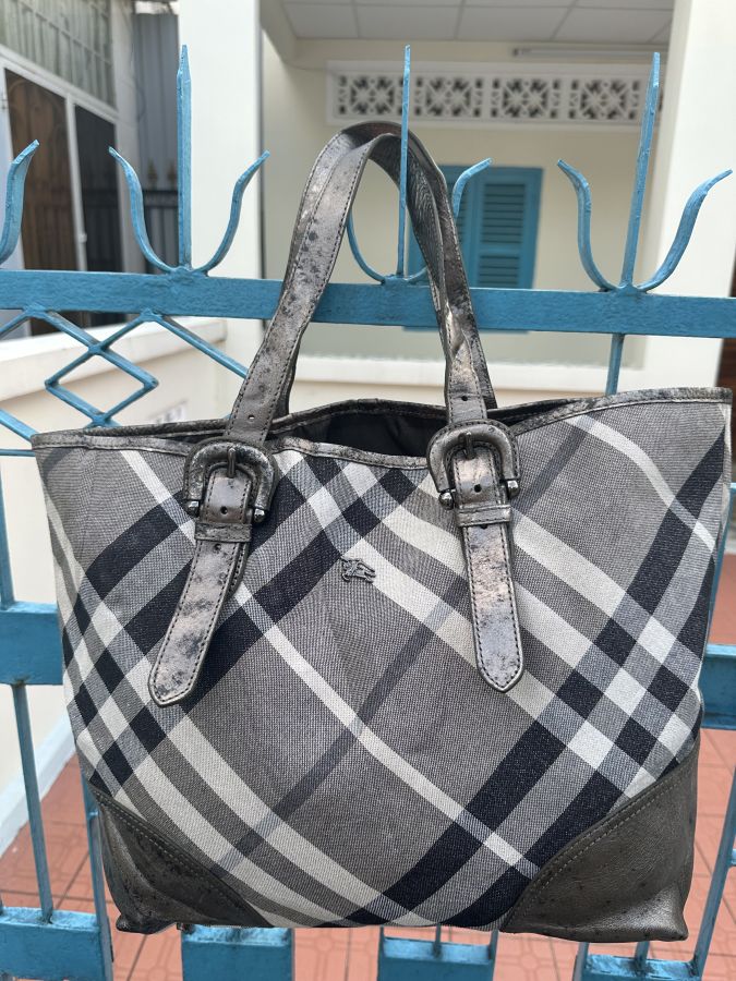 Em tote hàng hiệu burberry. Các chi tiết còn rất moies và đẹp chỉ có da vì phủ nhũ bạc bị bong ra thôi còn lại rất chất . Đi chơi đi làm ok hết to chà bá