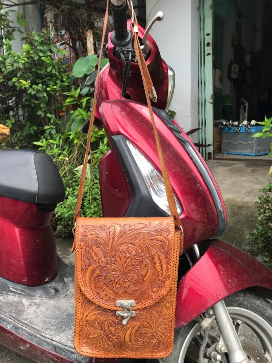 Hàng siêu hiếm và độc túi đeo hceos da mộc được chạm khắc tinh sảo . Đeo lên bảo đảm hok đụng hnagf . Hàng sưu tập