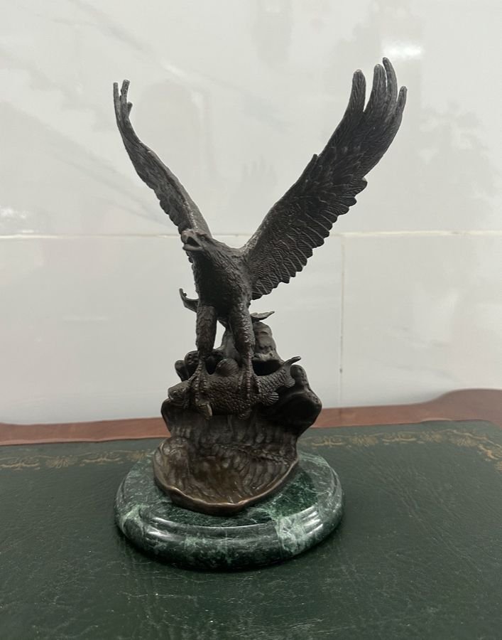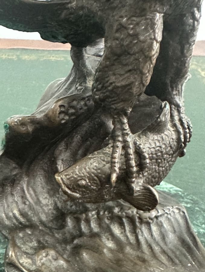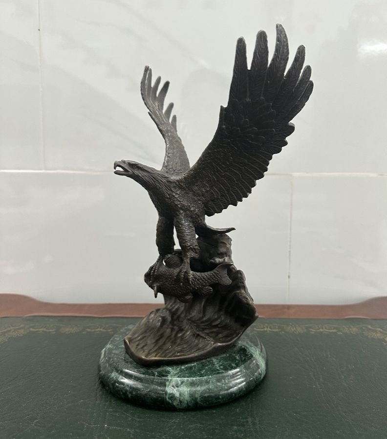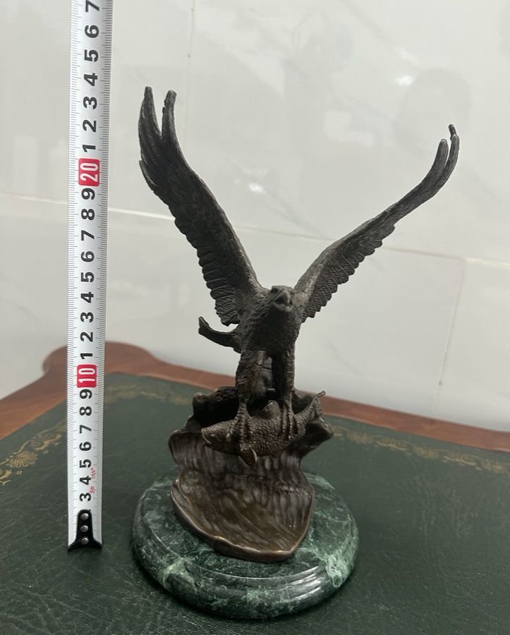 tượng chim ó đang bắt cá , chất liệu bằng đồng