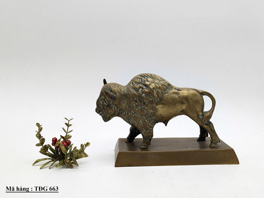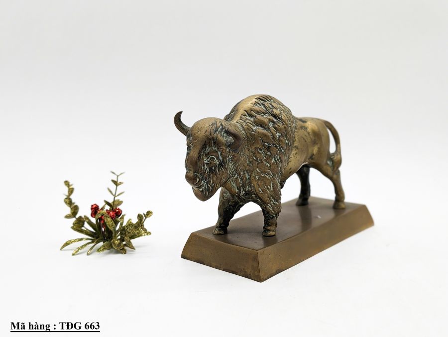 Tượng con bò rừng được làm bằng đồng. Kích thước : cao 16cm, dài 25cm, rộng 10cm Trọng lượng : 1,8kg Giá : 2.890.000 đ SDT liên hệ : 0326059733 Địa chỉ : Trang trí Mỹ Mỹ. 91 Phan Đình Phùng. P1. Đà Lạt Website : Trangtrimymy.com