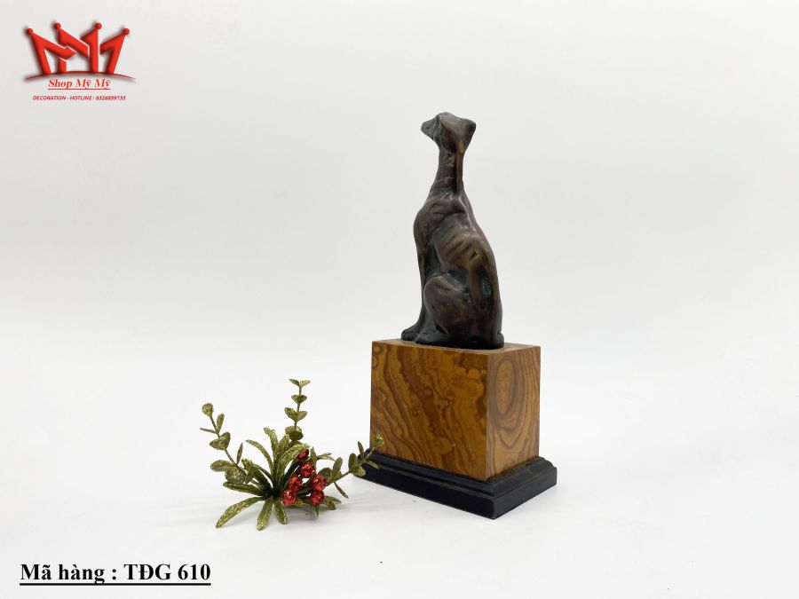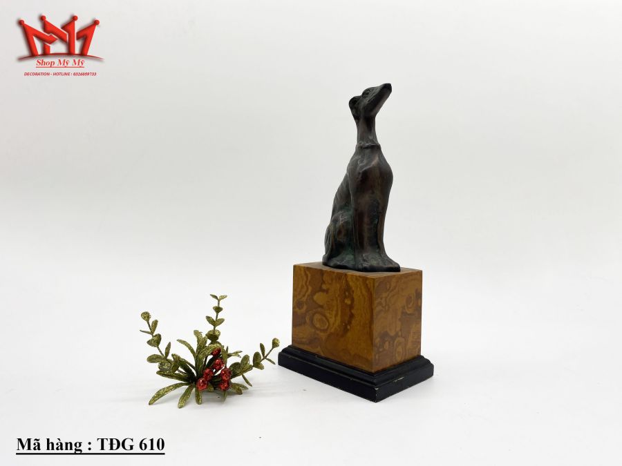 Tượng con chó ngồi trên đế gỗ được làm bằng đồng. Kích thước : cao 26cm, rộng 12cm Trọng lượng : 1kg Giá : 1.690.000 đ SDT liên hệ : 0326059733 Địa chỉ : Trang trí Mỹ Mỹ. 91 Phan Đình Phùng. P1. Đà Lạt Website : Trangtrimymy.com