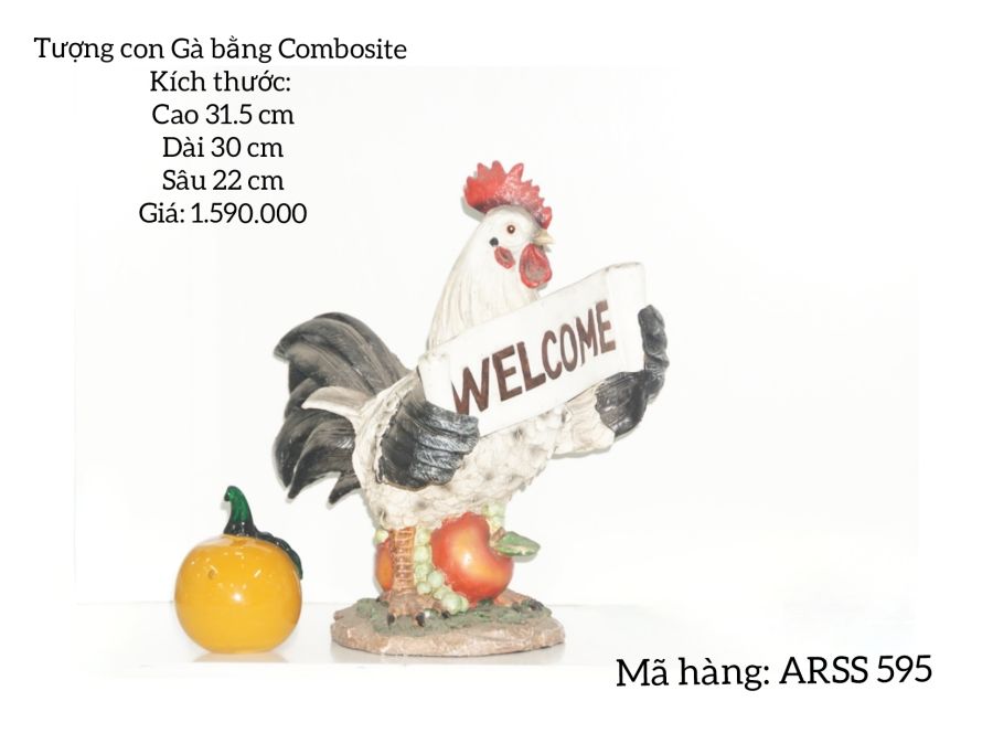 Tượng con Gà WELCOME bằng Combosite. Kích thước: Cao 31.5 cmDài 30 cm. Sâu 22 cm.Giá: 1.590.000