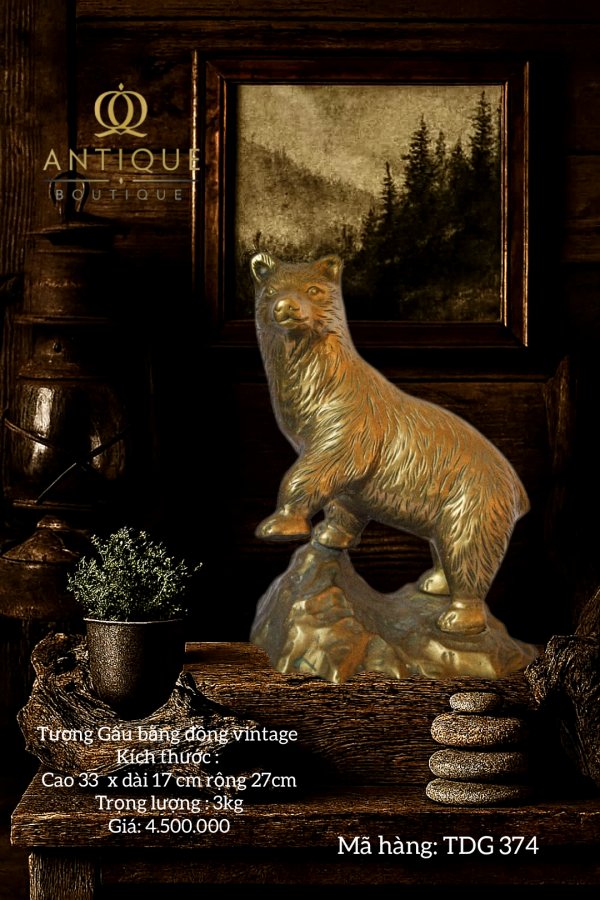 Tượng Gấu bằng đồng vintage.Kích thước: Cao 33 x dài 17 cm rộng 27cm