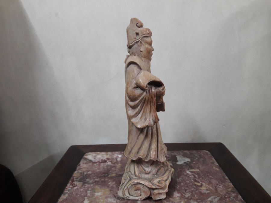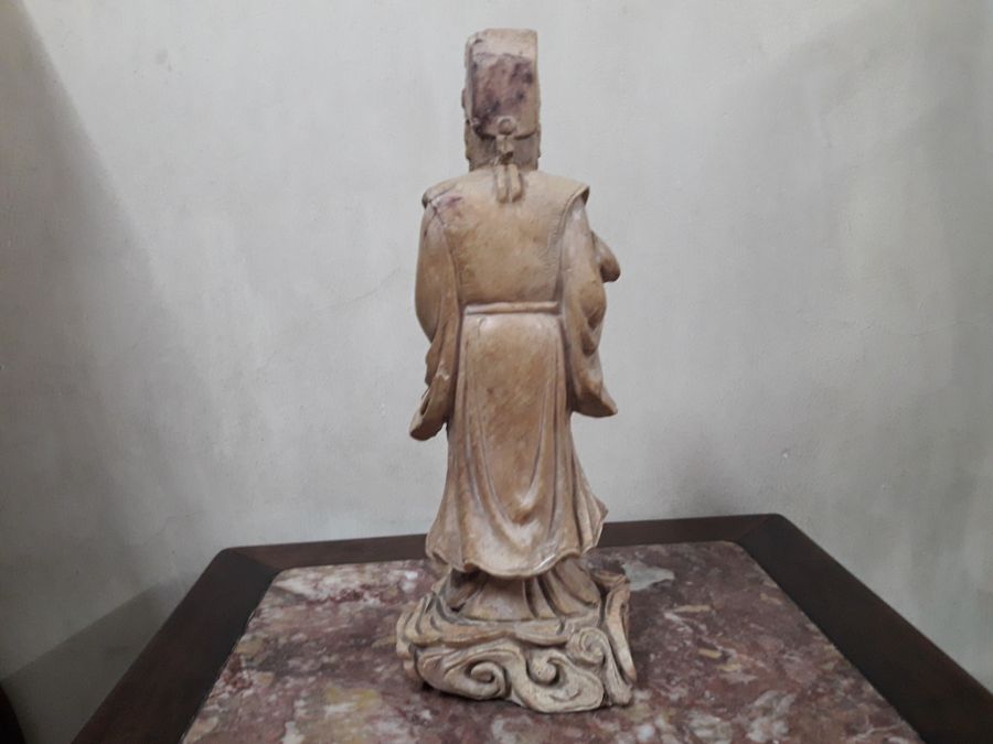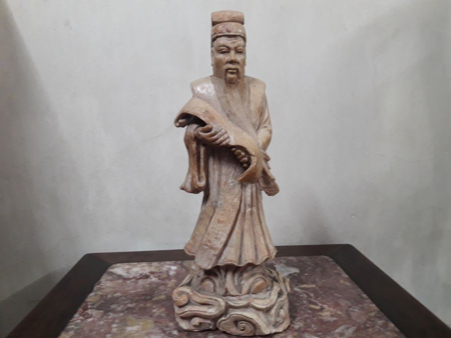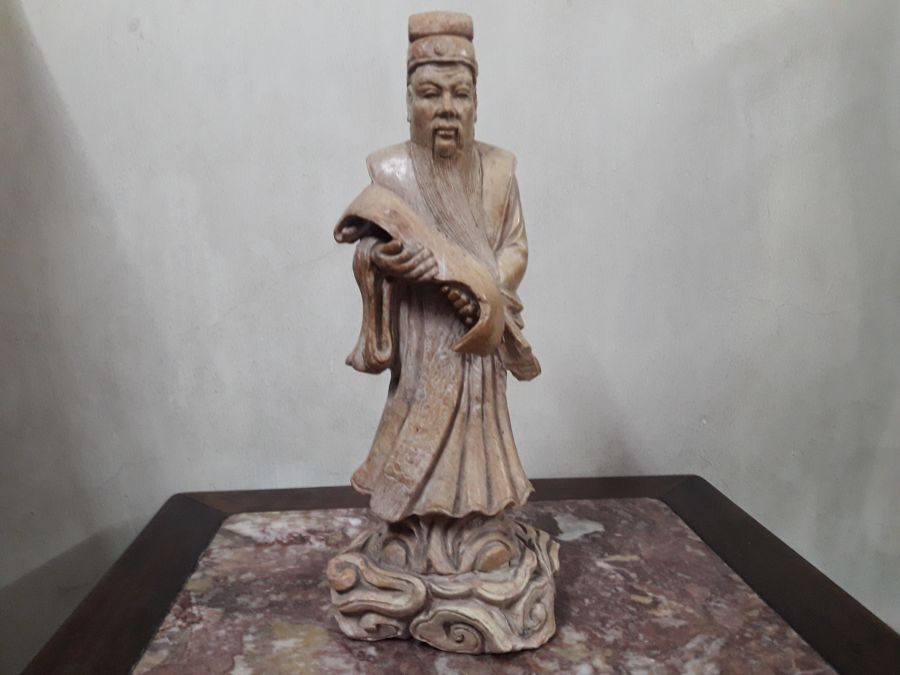 Bán tượng Khổng Tử chế tác bằng đá gan gà rất đẹp, chuẩn đồ xưa , tình trạng như hình ảnh, bị vết nứt ở cổ .Cao 30cm, chân đế ngang khoảng 12cm.Kính phố.