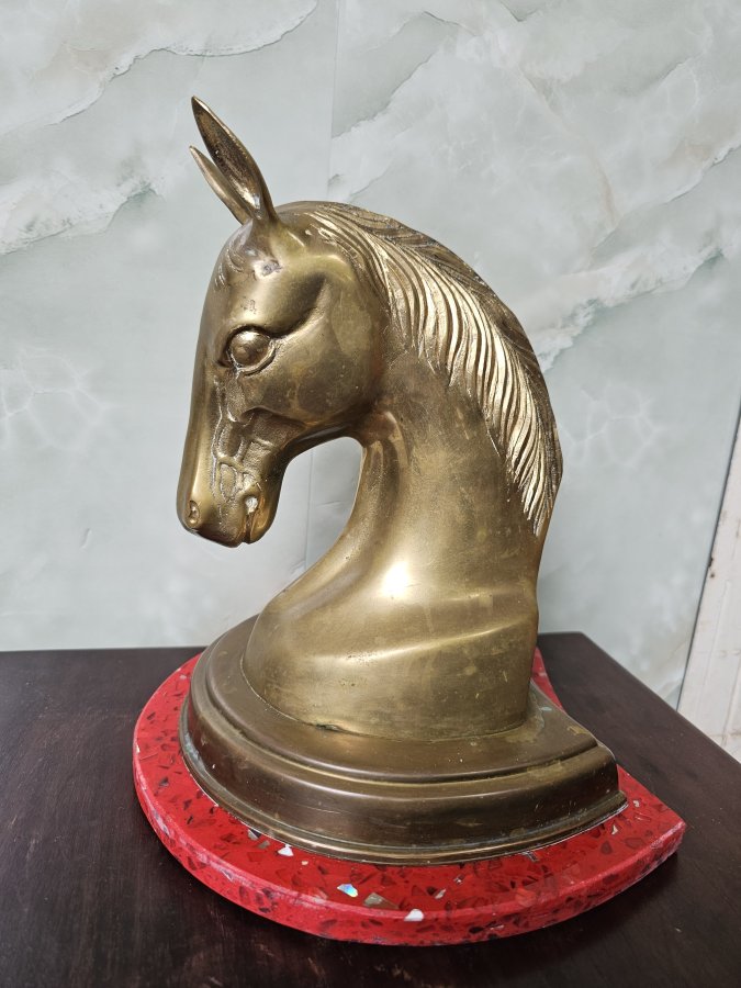 Tượng đầu ngựa bằng đồng, đế đá to đẹp.