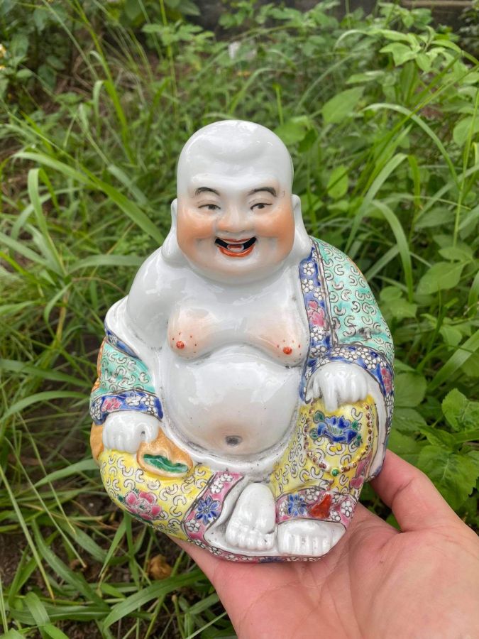 Giao lưu tượng Di lặc để bàn cuốI trung hoa dân quốc hiệu đề triện đáy lò Ngụy Hồng Tài chế. Cao 17 ngang 17 sâu 13 Tình trạng lành Giá 1400k