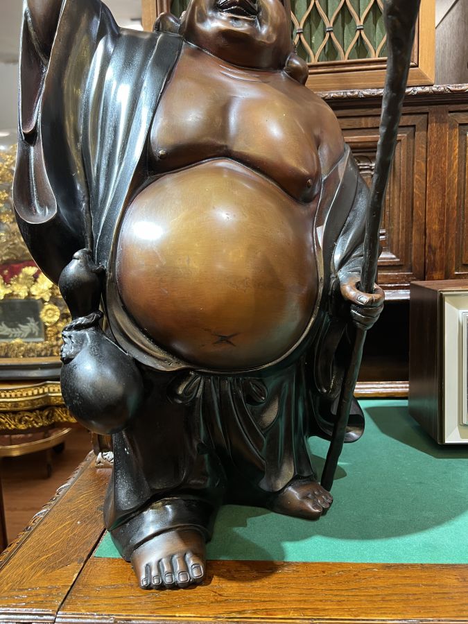 Rất thần tháiChất liệu đồng đúc sâu tuổi. Nặng gần 30kg, có triện. Cao 80cm