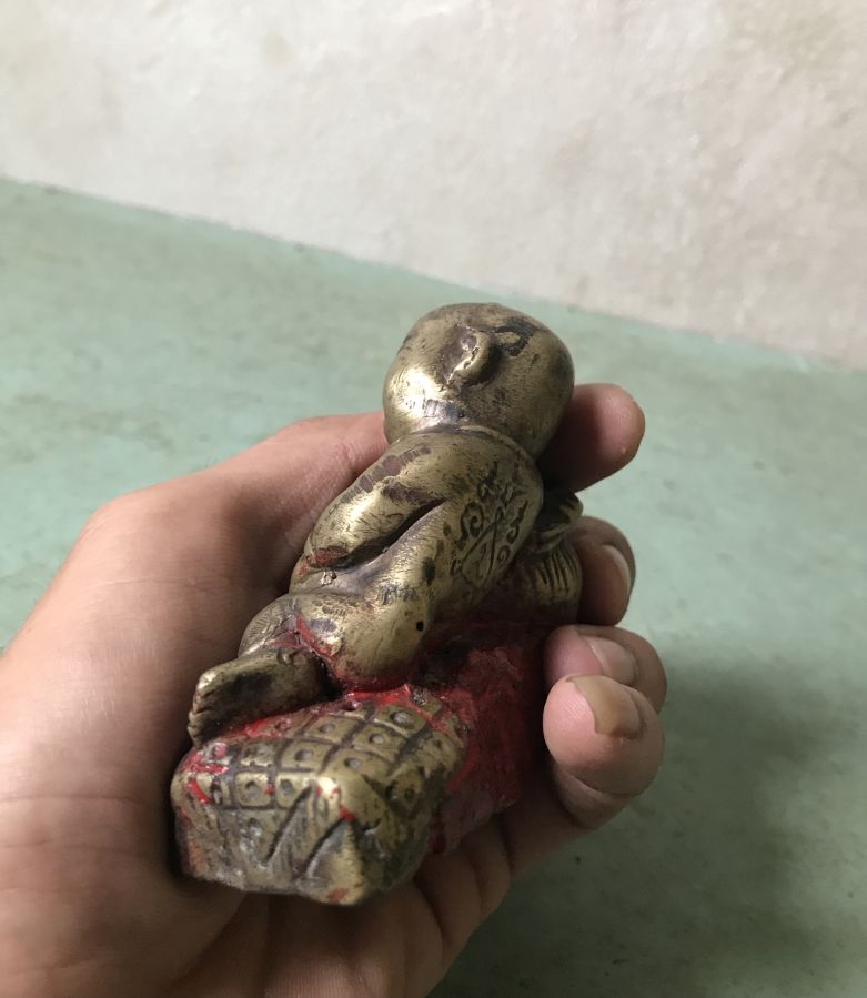 Bức amulet cậu bé tài lộc đồng ,xưa .Kt mini cao 7,5cm