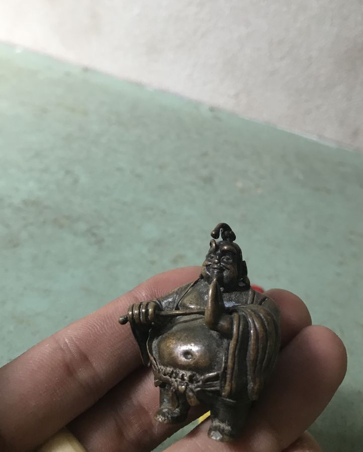 Tượng đồng thủ công lão đạo trưởng bụng bự ,cũ xưa .Kt mini cao khoảng 4,5cm