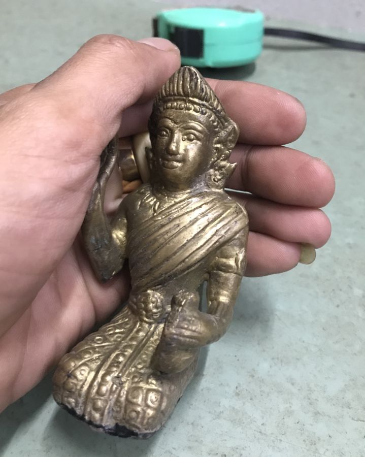 Tượng đồng mẹ ngoắc tài lộc ,cũ xưa .Kt mini cao 9cm