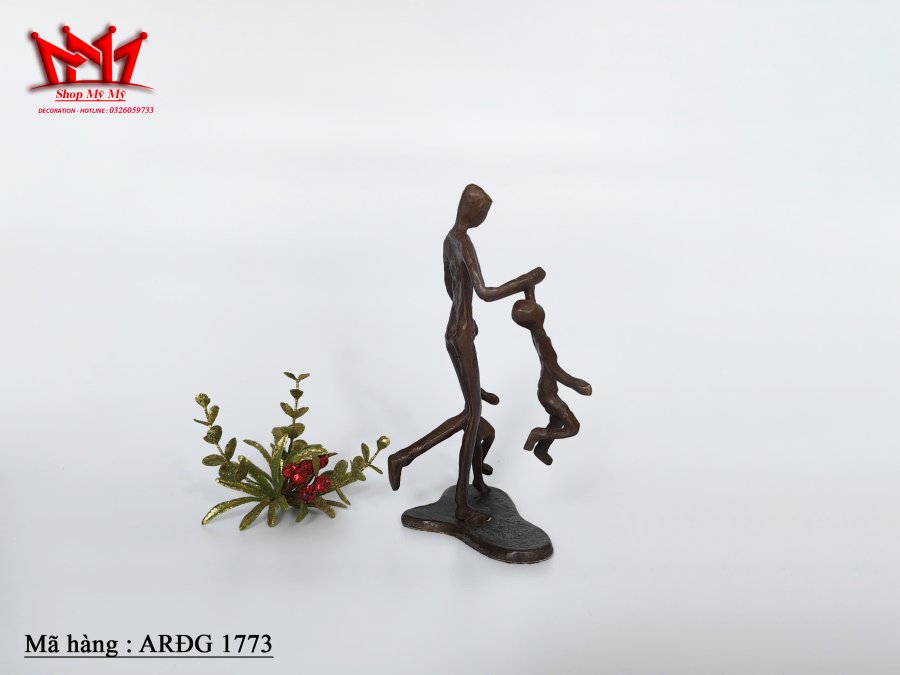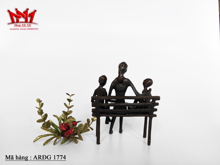 Tượng gia đình bằng đồng xưa.
