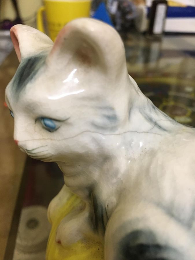 Tượng mèo khoang dáng ít gặp, chất liệu: sứ, để bàn hoặc bày tủ dành cho sưu tầm, tình trạng tóc như hình chụp, kt 7x10x13 cm, giá cho ae sưu tầm: 150k + ship. Lh : Mr Nguyên ngõ 195/59 Trần Cung, Bắc Từ Liêm, Hà Nội, đt 098 693 8855/ 093-631-6876 (Zalo). Fb: Nhà Nguyên. Còn tin là còn hàng. Hàng nhận ship toàn quốc (giá không bao gồm ship). Cảm ơn bạn đã chú ý xem tin.