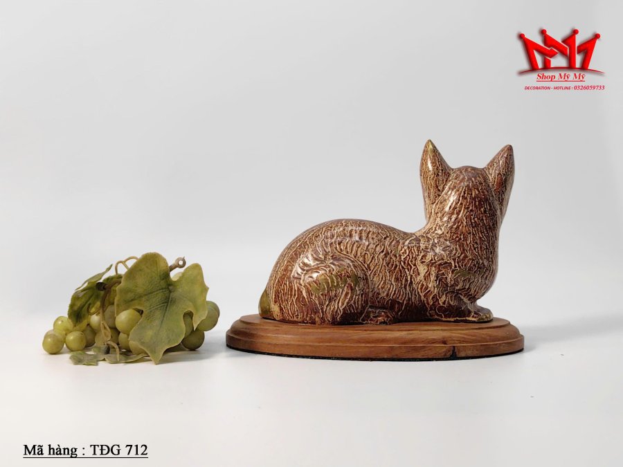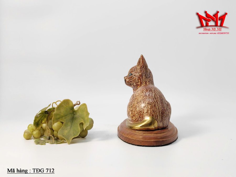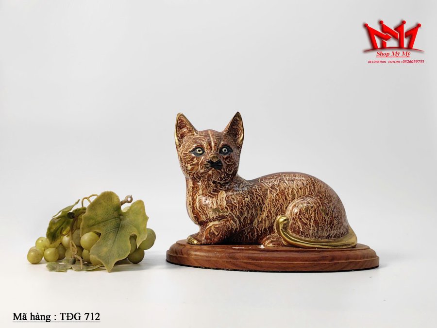 Tượng mèo mắt xanh bằng đồng thau cổ điển của Áo.