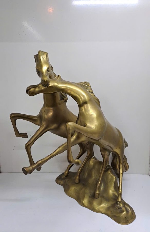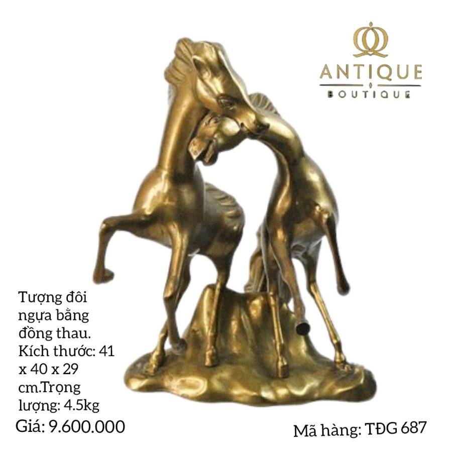 Tượng đôi ngựa bằng đồng thau. Kích thước: 41 x 40 x 29 cm.Trọng lượng:4.5kg.ANTIQU BOUTIQUE