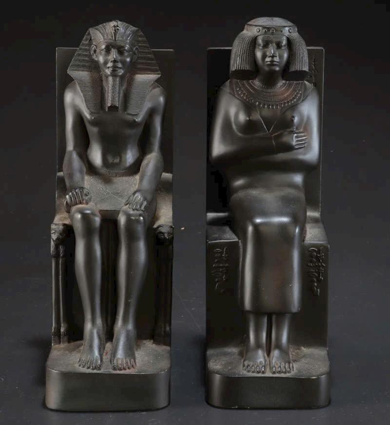 Tượng Pharaoh Khafre và Nữ hoàng Nefert làm giá chặn sách,đầu sách của Ai Cập cổ đại.Kích thước 9cm* 14cm*25cm,nặng 5,7kg.